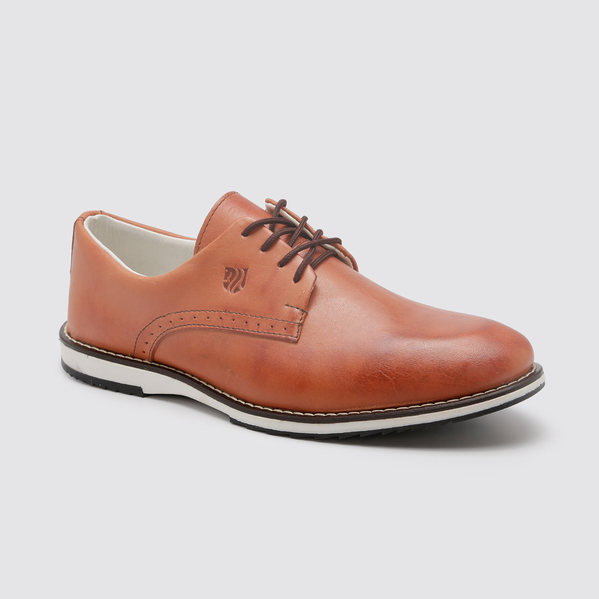 Sapato Social Casual Oxford Derby Polo Vest – 100% Couro Legítimo - Cor Whisky
